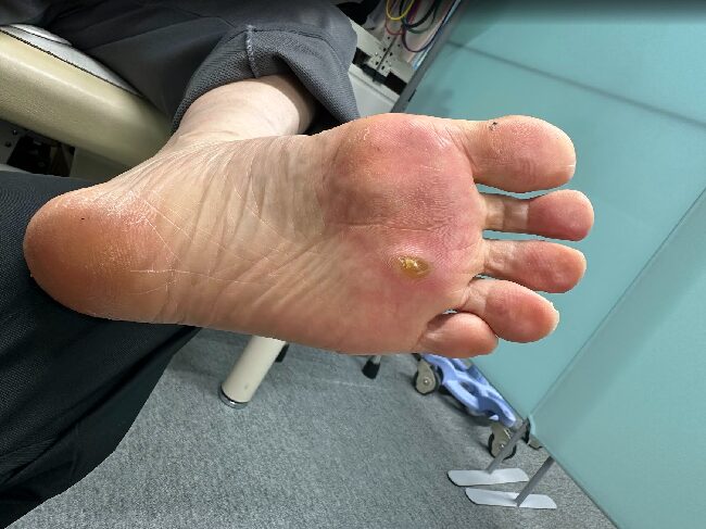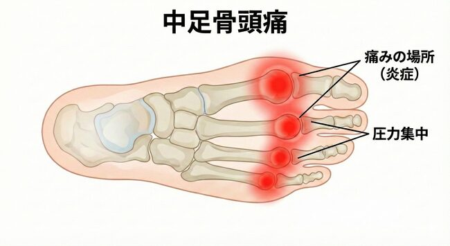 歩行時や立っているときに足の裏の指の付け根あたりに痛みがあり、まるで石を踏んでいるような感覚があります。