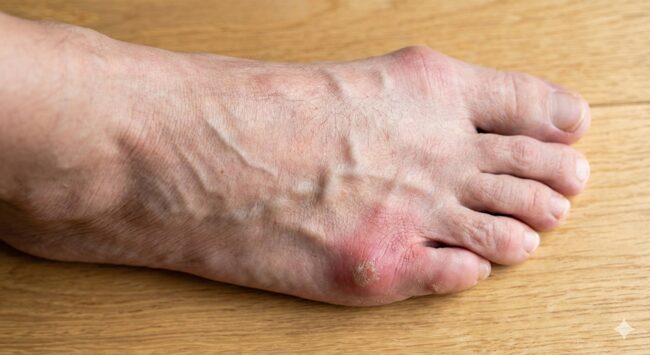 痛風は、血液中の尿酸値が高くなり、尿酸の結晶が関節に沈着することで起こる炎症です。特に親指の付け根の関節に激しい痛みと腫れ、赤みが突然現れることが特徴で、夜間から明け方にかけて発症しやすい傾向があります。