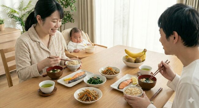 塩分の適正な管理が重要です。過剰な塩分摂取は体内に水分を保持させる原因になりますが、産後の授乳期に極端な塩分制限は推奨されません。1日8〜10g程度を目安に、味付けを薄めにしたり、出汁や香辛料を活用したりして、美味しく減塩を心がけてください。