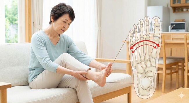 | 足指の筋力低下 | 内在筋や足底筋の衰え | アーチを支えきれなくなる |