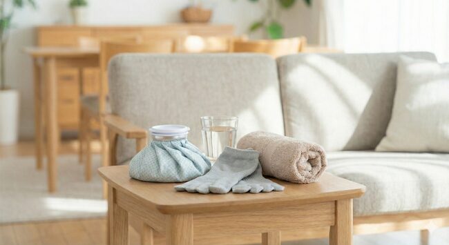 足の内側の痛みは、原因や程度によってはセルフケアで症状を和らげることができます。ただし、痛みが長引く場合や悪化する場合は、早めに医療機関を受診することが重要です。ここでは、自宅でできるケア方法を紹介します。