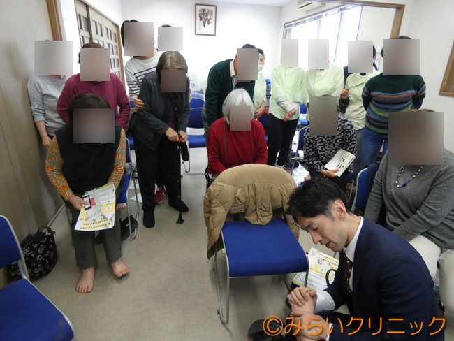 写真にもあるように、今回は私も皆さまの輪の中に入り、お一人おひとりの足に触れさせていただきながら、正しいやり方をお伝えしました。