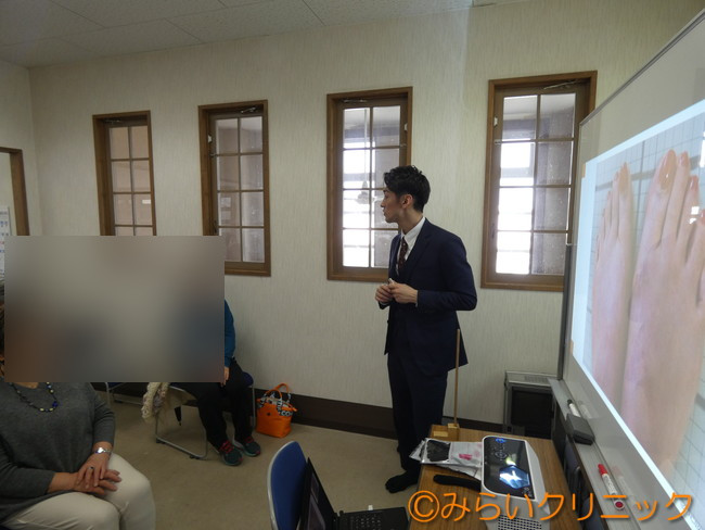 スライドで足指の変形を紹介しながら、皆さんと一緒に足ゆびのチェックを行いました。
