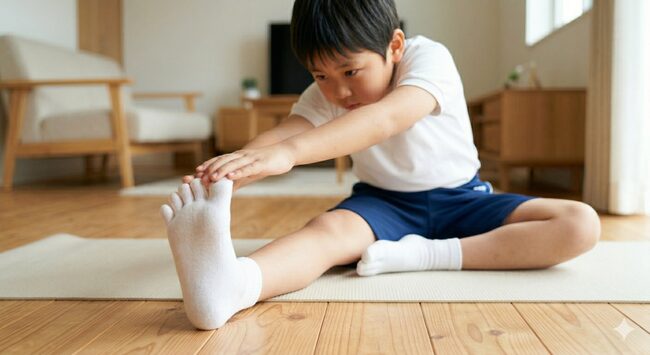 成長痛の予防と緩和には、大腿四頭筋とハムストリングスのストレッチが効果的です。成長期は骨の成長に筋肉が追いつかず、筋肉が硬くなりやすいため、柔軟性を保つことが重要です。