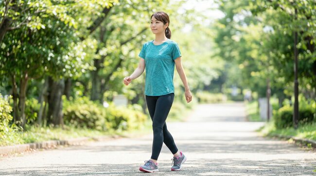 理想的な歩幅は、自然に立った状態から一歩を踏み出し、かかとで着地したときに膝が軽く曲がる程度です。歩行速度は、息が軽く弾む程度のペースが有酸素運動として効果的とされています。代謝アップを目指す場合は、やや速めのペースを意識してみましょう。