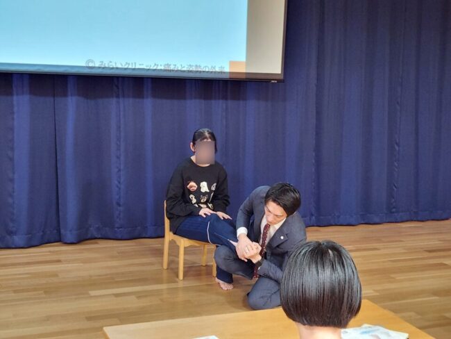 今回は実技の時間を多めに取り、先生方自身に足指の役割を体感してもらいました。