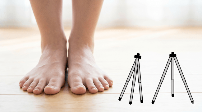 足指が広がると、この横アーチがしっかり形成されます。人間の体はカメラの三脚と同じで、足指がしっかり広がって地面をつかむことで、体全体が安定します。三脚の脚が縮こまっていてはカメラが倒れやすいように、足指が機能しないと体のバランスが崩れます。